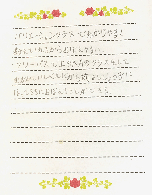 大人クラスの生徒さんの声