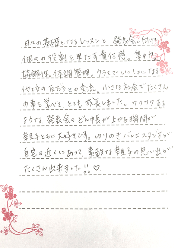 子供クラスの生徒さんの声